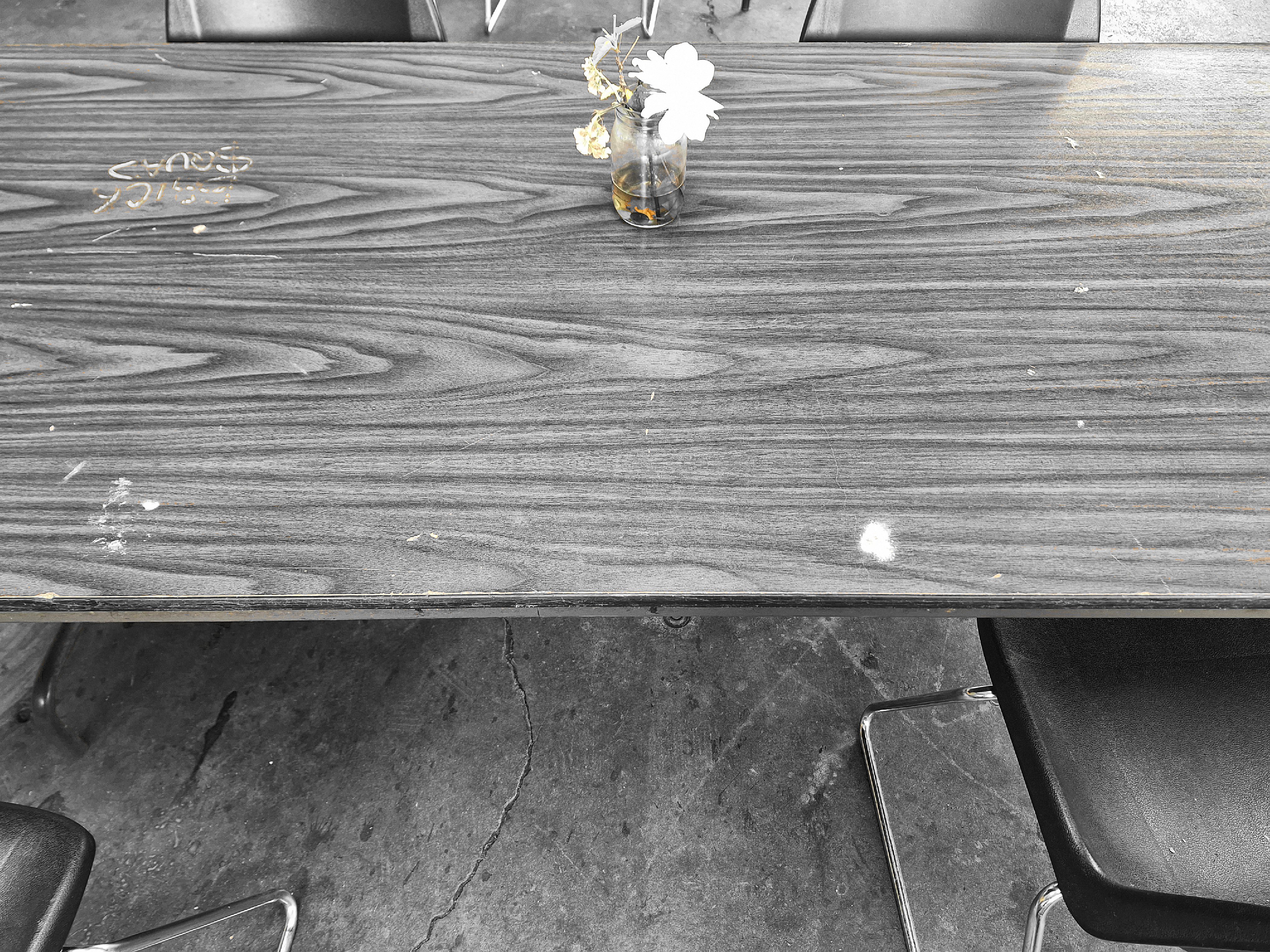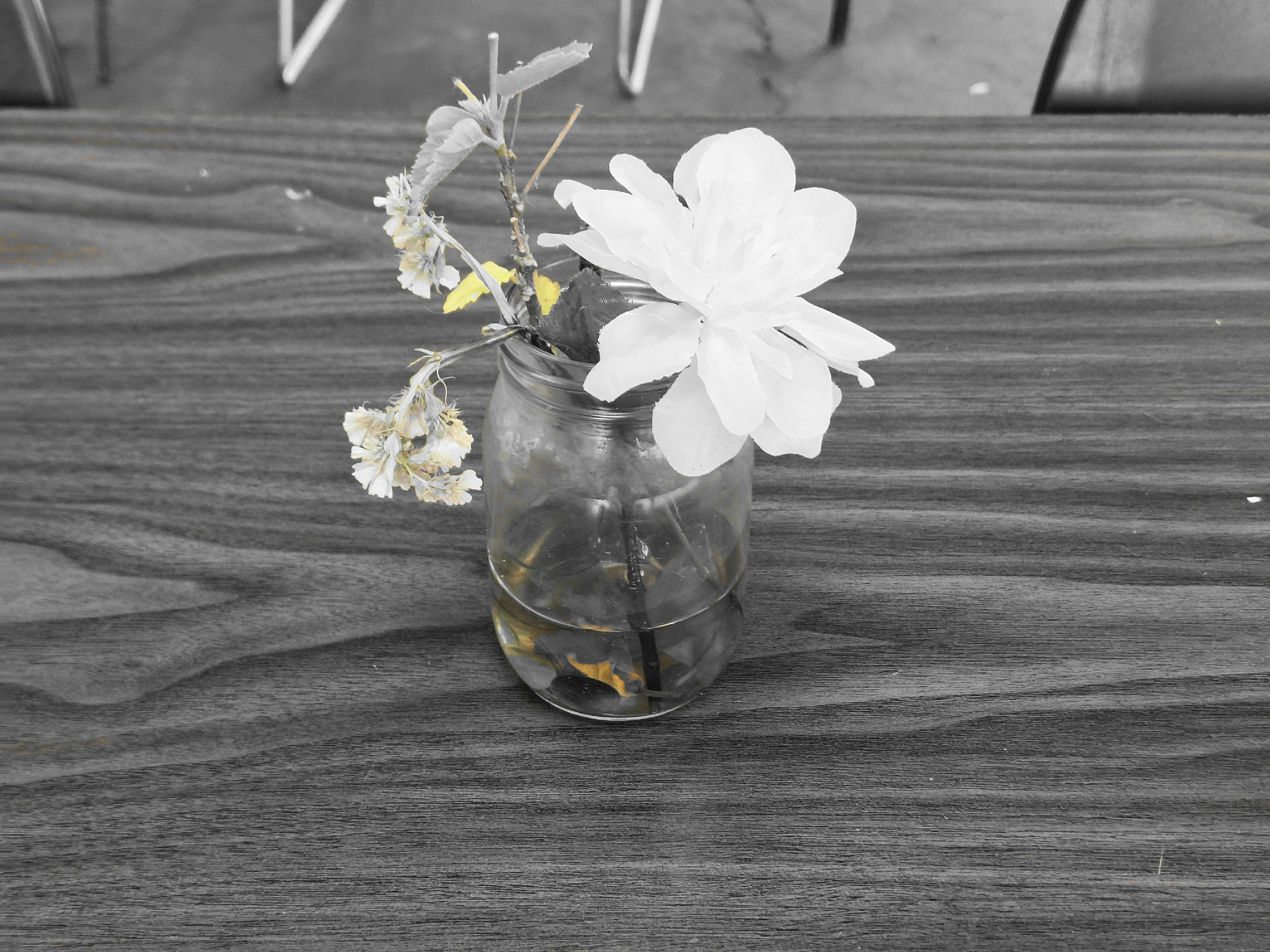 20251023_093326.jpg une staffo brought the flower jars out for each table, today this table in front of me is the only with white (&…) …